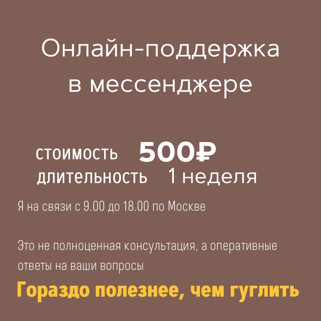 Онлайн-поддержка в мессенджере от квалифицированного кинолога - это не полноценная консультация. Но это оперативная, своевременная помощь с ответами на любые вопросы.